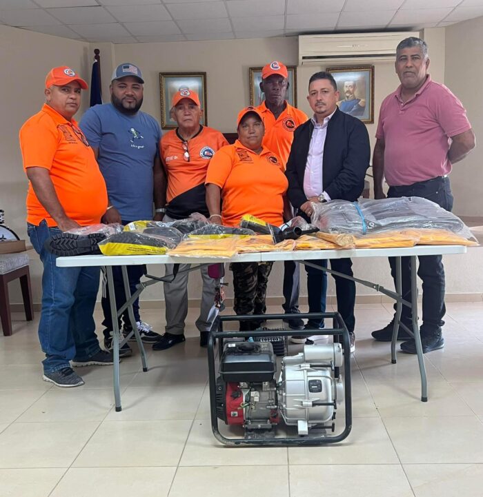 El pasado lunes, dos (02) de diciembre del 2024, La Junta Distrital de Las Palomas hace entrega de equipos esenciales a la Defensa Civil, incluyendo motobombas, botas, capas para agua, guantes plásticos y lonas.